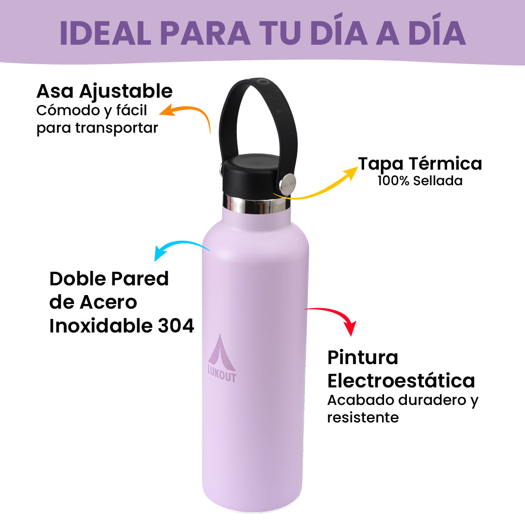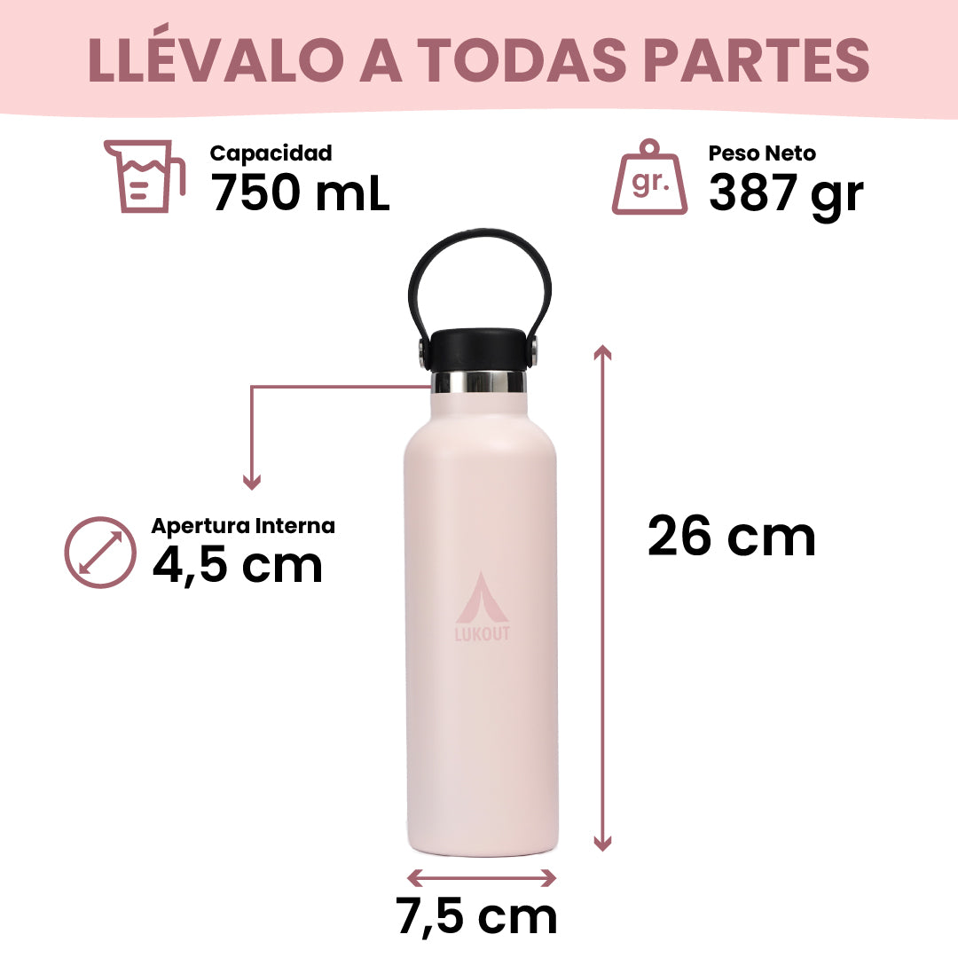 La botella térmica de 750 ml combina estilo y funcionalidad. Su cuerpo de acero 100% inoxidable de grado alimenticio tiene un diseño delgado que permite transportarlo en el auto en el portavasos de forma fácil y segura. Su tapa es 100% hermética y a prueba de fugas. Perfecto para cualquier aventura o tu día a día. Mantiene tus bebidas frías o calientes todo el día.