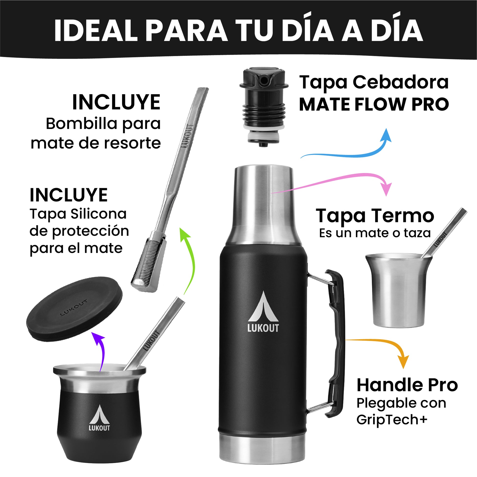 - Termo Mate Flow Pro de 1200 ml + Mate 170 ml.