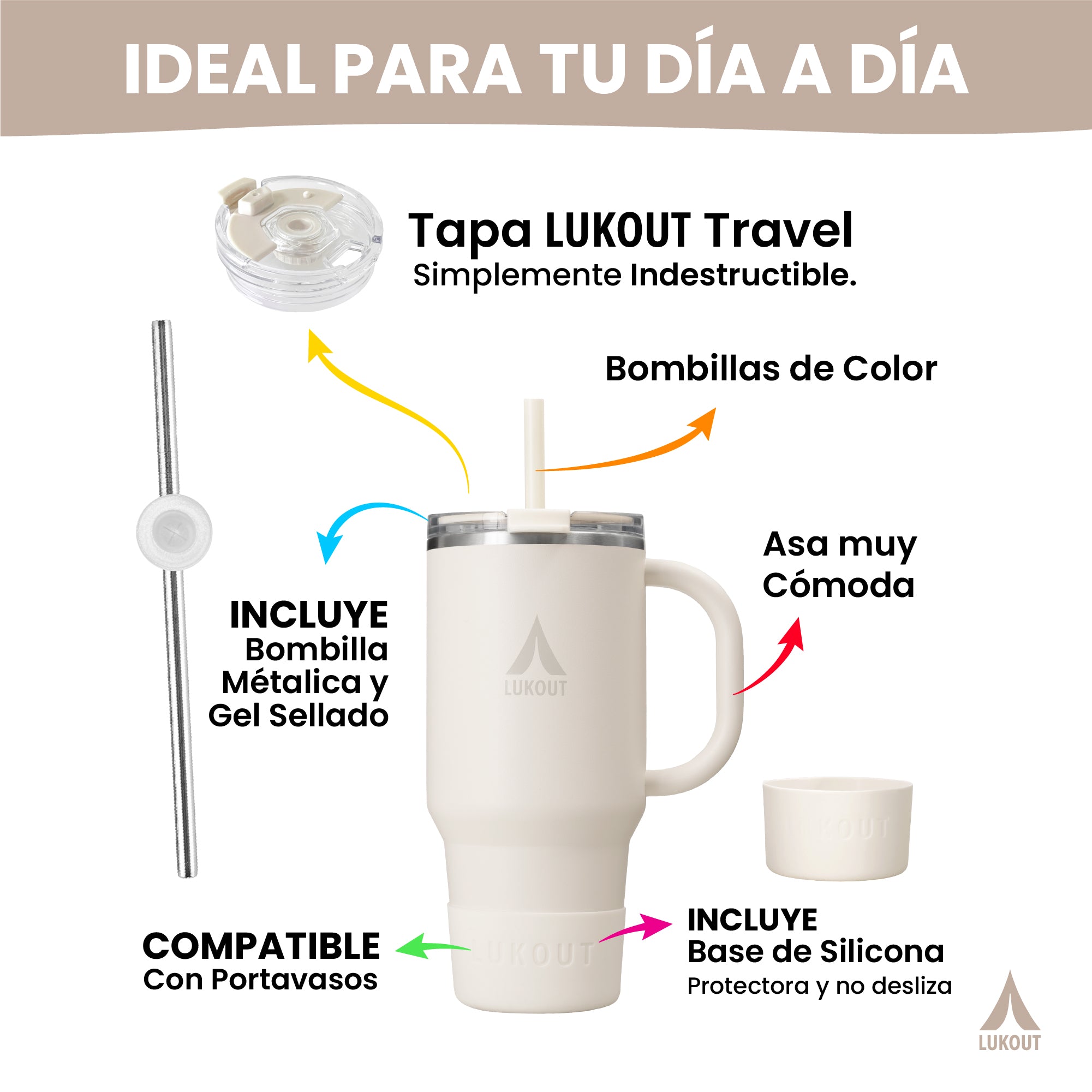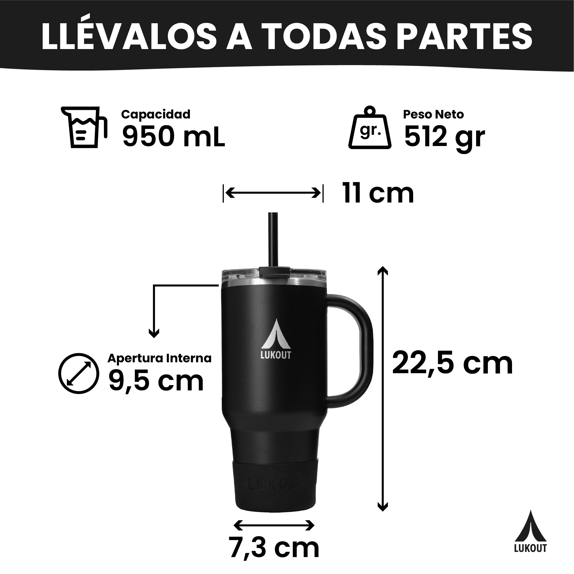 El Vaso Travel LUKOUT de 950 ml es tu aliado perfecto para hidratarte todo el día. Está diseñado para ser más resistente y liviano. Su doble pared con sellado al vacío mantiene las bebidas frías por 24 h y calientes por 6 h. La Tapa Travel 2-en-1 te permite beber de forma directa, o con una bombilla. Es compatible con la mayoría de portavasos estándar e ideal para el auto, la oficina o cualquier aventura.